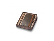 Zestaw upominkowy, marki Sheaffer, składa się z długopisu z kolekcji 100, model 9374 i brązowego, skórzanego notesu A6.