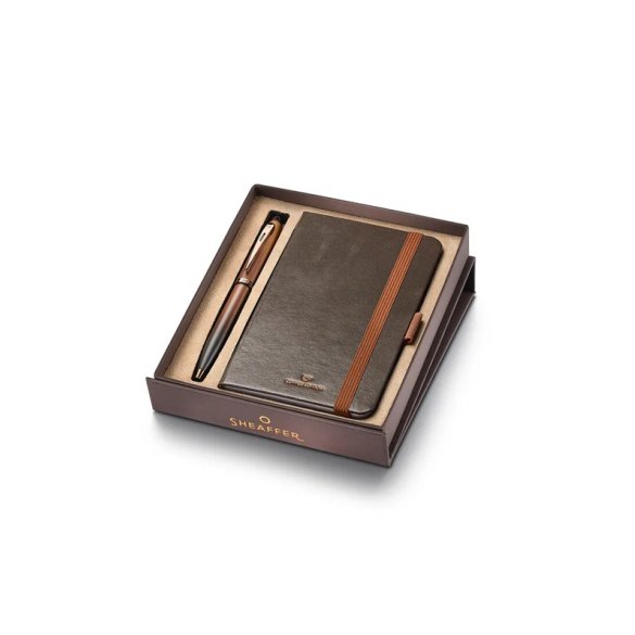 Zestaw upominkowy: długopis Sheaffer 100 z przejściami tonalnymi, elementy PVD w kolorze brązowym, brązowy, pasujący do całości notes A6.